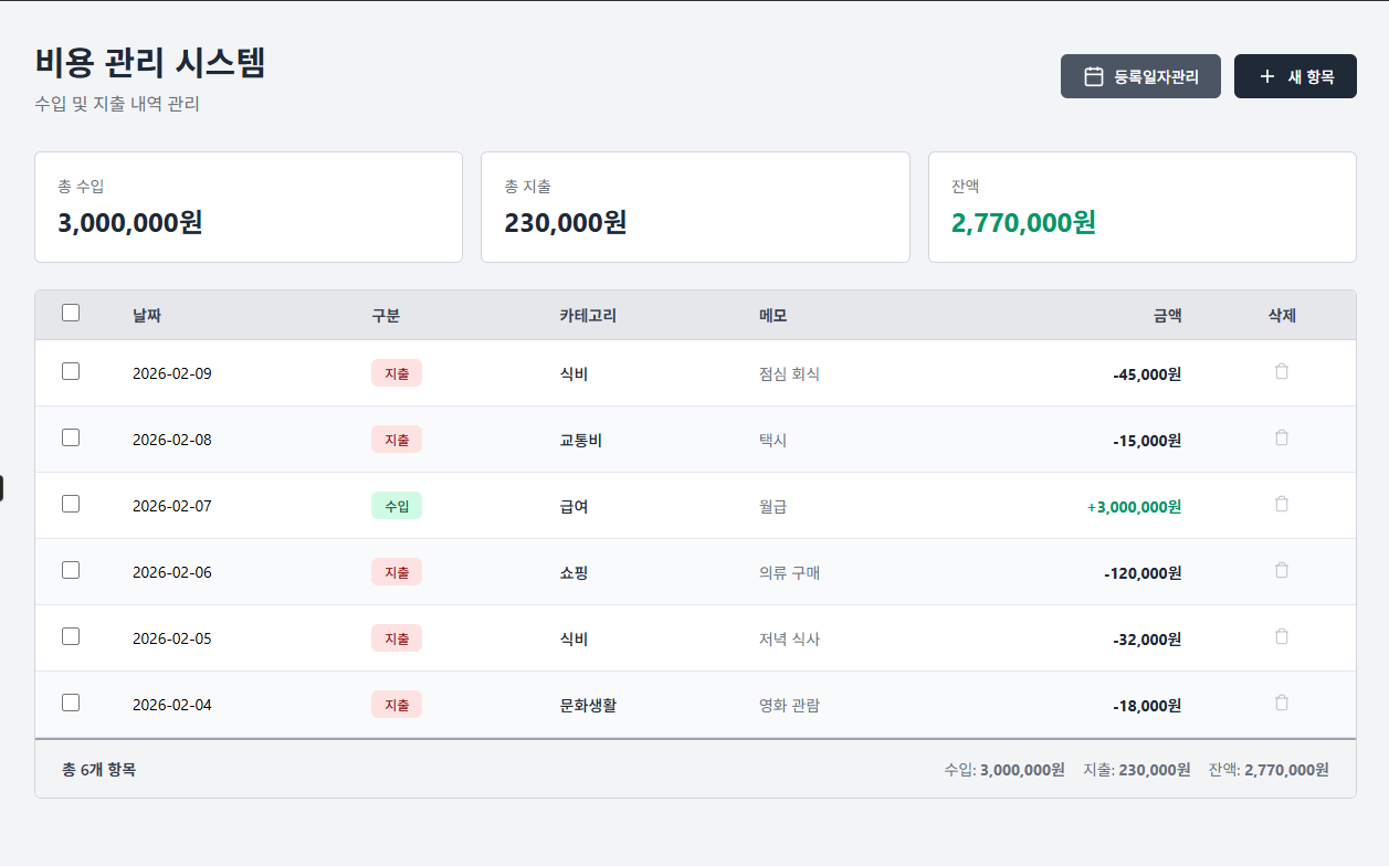 권한과 기간을 구조적으로 분리함으로써, 다수 사용자가 참여하는 환경에서도 비용 데이터의 일관성과 관리 효율을 유지할 수 있었다.